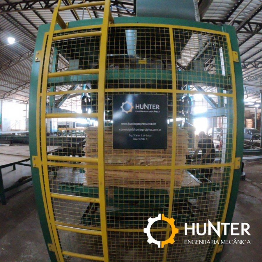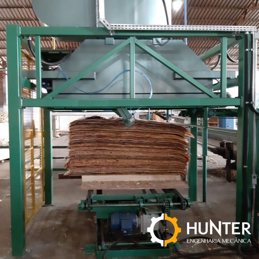 O empilhador de lâminas Hunter (modelos 1.400 e 2.700 com 01 ou mais deck) tem como finalidade o aumento de aproveitamento das lâminas evitando quebras durante o manuseio causado pelos operadores. O empilhador também proporciona uma redução no quadro de funcionários necessários em uma linha de laminação.