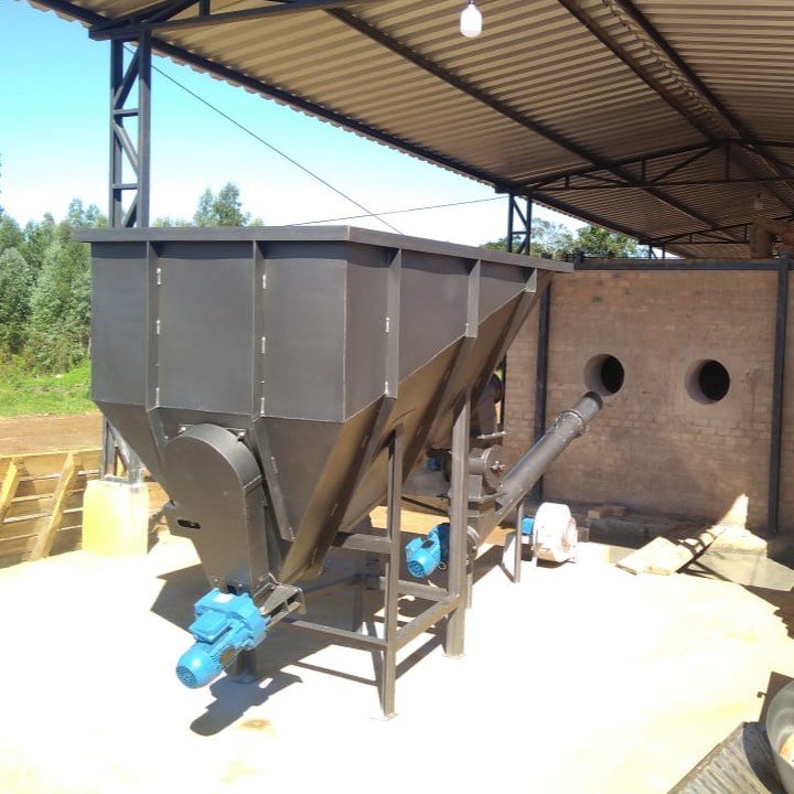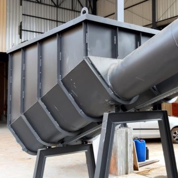 Equipamento também conhecido por tremonha que se destina a receber o material granulado e transferir com vazão controlada para outro transportador, que lhe dará o destino dentro do processo. São construídas de aço carbono, inox as paredes podem ser feitas de alvenaria.